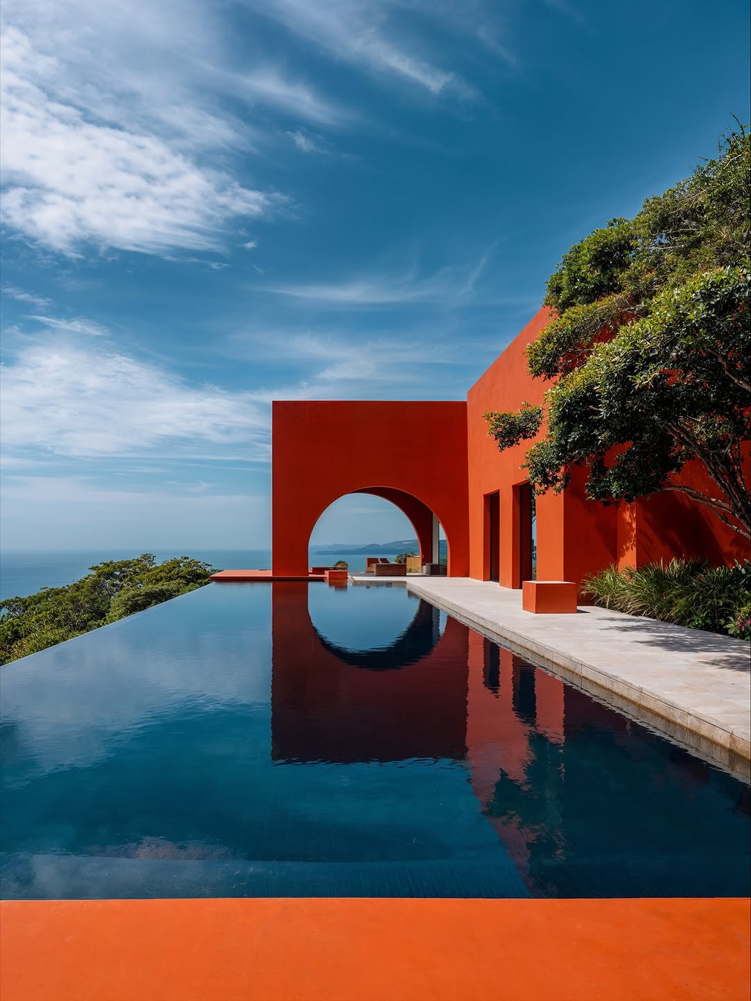 • Combine infinity pool and open arch frame to nature to create a similar effect.