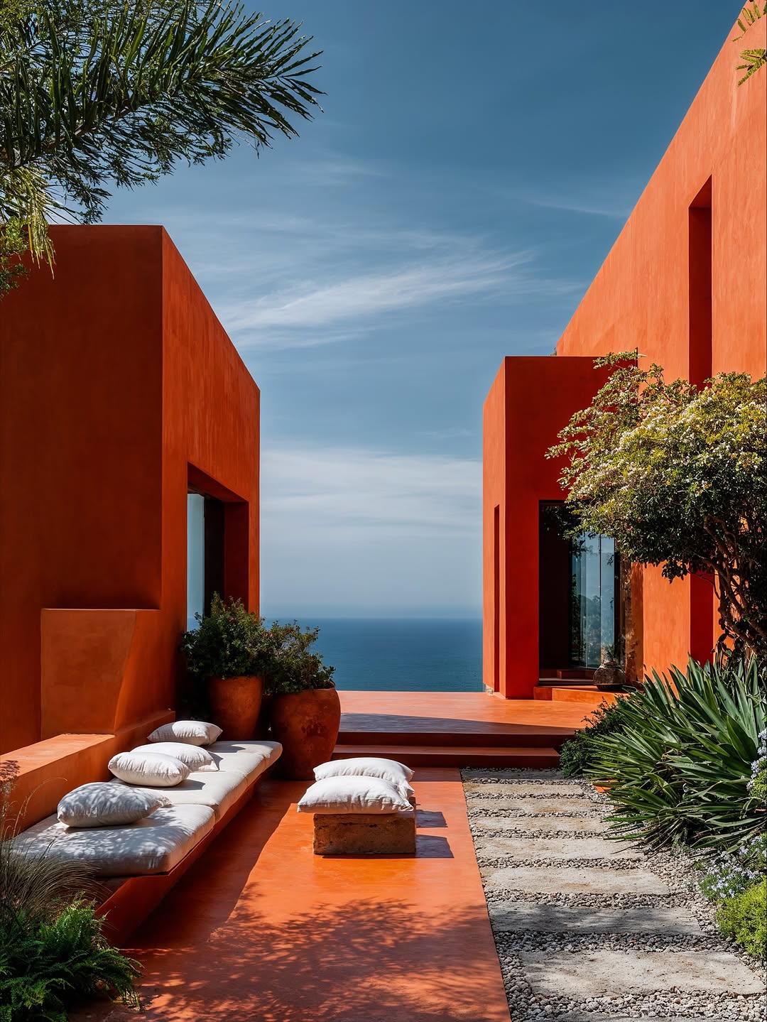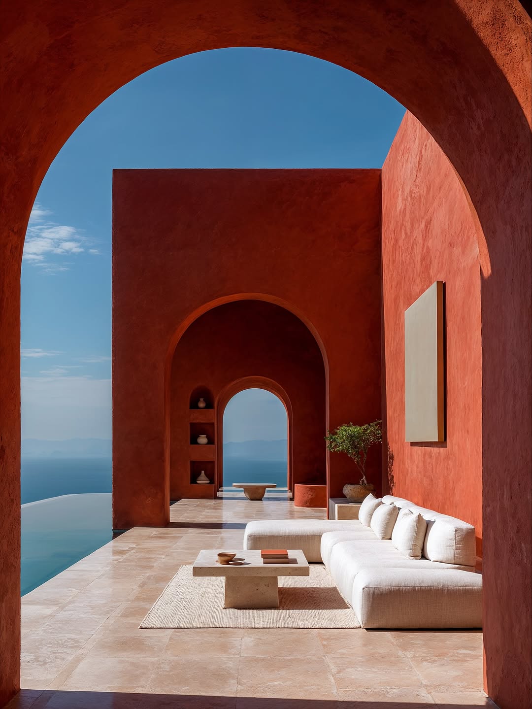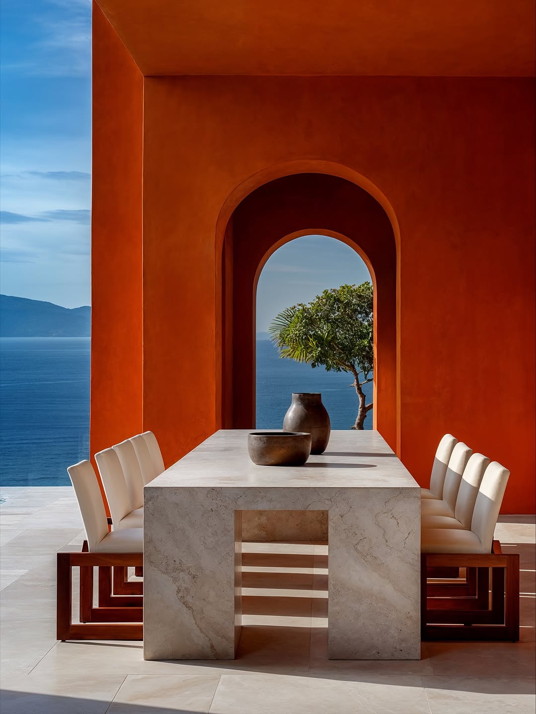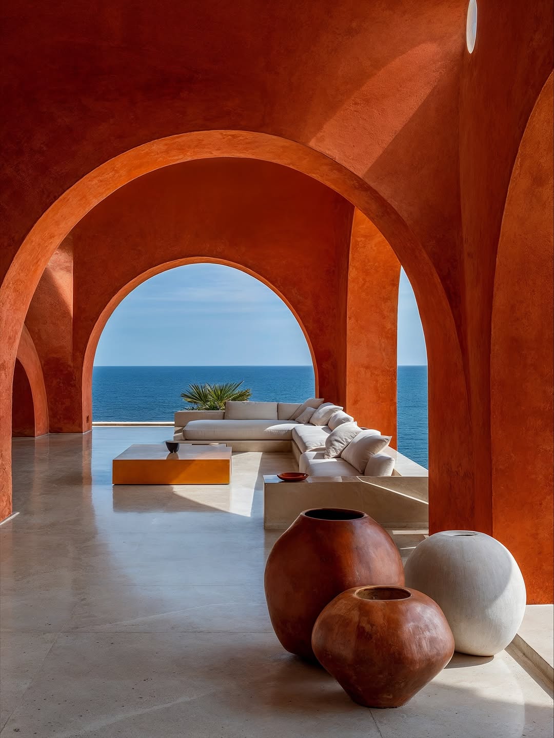 • Open arches facing the sea, capturing natural light and wind, making the space almost blur the boundary between inside and outside.